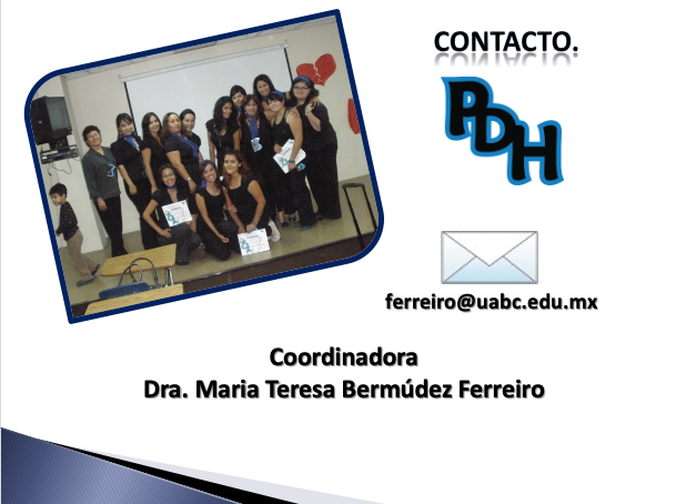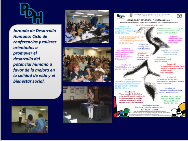 Mi portafolio PDH muestra La descripción y las acciones del Programa de Desarrollo Humano, que diseñé, implementé y coordiné, desde el año 2003 al 2013, en la Facultad de Ciencias Humanas de la Universidad Autónoma de Baja California.